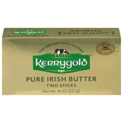 Milk from Irish grass-fed cows. Irish: Grass-fed cows. Imported: First quality. In Ireland, cows graze on the green pastures of small family farms. Their milk is churned to make Kerrygold Pure Irish Butter. kerrygoldusa.com. (at)KerrygoldUSA. For more information on our products, visit kerrygoldusa.com/irishgrassfed; kerrygoldusa.com. Product of Ireland.