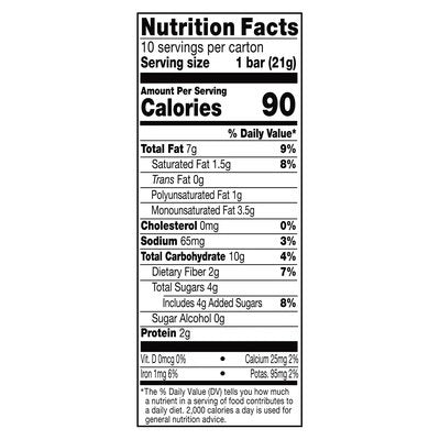 90 calories. 4 g sugar. Gluten free. Low sodium. No sugar alcohols. See nutrition panel for fat content. No genetically engineered ingredients. No. 1 ingredient almonds. Kind Thins are the oh-so-snackable, slimmer version of our Kind bar flavors. Enjoy the delicious taste of sliced almonds, diced peanuts and rich dark chocolate in every bite. This perfectly portioned 90 calorie bar is a delightfully thin snack that's perfect to enjoy on the go. Ingredients you can see & pronounce. kindsnacks.com. Instagram. Twitter. Facebook. (at)kindsnacks. Tell us your favorites & join the conversation: kindsnacks.com. Recycle this carton. FSC: Recycled - Packaging. Made in U.S.A. with domestic and imported ingredients.