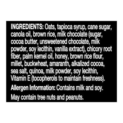 Made with 5 super grains (oats, millet, buckwheat, amaranth, quinoa). 12 g per serving. 0 g trans fat. Gluten free. Low sodium. No genetically engineered ingredients 100% whole grains. Ingredients you can see & pronounce. This bar started out just like all Kind Healthy Grains bars- with a delicious and chewy blend of five super grains. What makes this bar different? We mixed in milk chocolate chunks and added a layer of milk chocolatey coating to the top and bottom. Because sometimes more is more. 100% whole grain oats. Milk chocolate chunks. Chocolatey drizzle. Do the kind thing for your body, your taste buds & your world. 5 super grains oats, millet, buckwheat, amaranth, quinoa. kindsnacks.com. Instagram. Twitter. Faceboook. (at)kindsnacks. Learn more at kindsnacks.com. Welcome to the kind community! Here at kind, we think a little differently. Instead of ‘or’ we say ‘and’. we choose healthy and tasty, convenient and wholesome, economically sustainable and socially impactful. From the snacks and food we make, to the way we work, live, and give back, our goal is to make Kind not just a brand, but also a state of mind and community to make the work) a little kinder. Kindly yours, - Daniel Lubetzky, Kind Founder. FSC. www.fsc.org. Recycled. Packaging made from recycled material. Recycle this carton. Made in U.S.A. with domestic and imported ingredients.