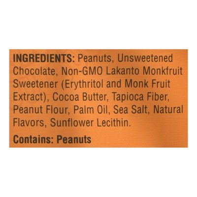2 net carbs (Net Carbs: Subtract fiber and sugar alcohols from total carbohydrates.) Vegan. Gluten free. Keto. Keto friendly. No sugar added. 55% cacao - sweetened with monkfruit. Made for Sharing - or Not: these peanut butter cups are perfect for sharing. Don't have someone to share with? Even better, you can have them all. They're dairy-free, keto-friendly, and vegan. Go ahead and treat yourself. Over a Thousand Years Ago: in the remote mountain highlands of Asia, a group of Buddhist monks called the Luohan achieved enlightenment and ascension through meditation and pure living. The monks discovered a rare superfood prized for its sweetness and its ability to raise chi, or life energy. This sacred fruit was named monk fruit and was used for centuries to increase chi and well-being, earning it the nickname "the immortals' fruit." we still harvest monk fruit for Lakanto in the same pristine area according to traditional and environmental methods. Lakanto's mission is to bring chi to life by inspiring people to reach their highest potential in health and wellness and by creating products that are innovative, delicious, natural, nutritious, sugar-free, and healthy. lakanto.com. Facebook. Twitter. Instagram. Pinterest. (hashtag)sweetresponsibly. (hashtag)discoveryourchi. For news, stories, recipes, and inspiration visit lakanto.com.