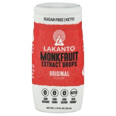 Zero carbs. Zero calorie. Sugar free. Keto. Keto friendly. Zero glycemic. What is monk fruit? Monk fruit's sweetness comes from natural mogrosides that are up to 300 times sweeter than sugar, but maintain zero calorie, zero glycemic benefits. We extract that mogroside from the rest of the fruit to bring you a concentrated sweetener. Without the bitter aftertaste of some sugar-free sweeteners, Lakanto monkfruit extract drops is the perfect sweetener for coffee, tea, smoothies, yogurt, and more. 4 drops = 1 tsp sugar. 23x sweeter than sugar. Great in coffee & tea. Pure monkfruit. lakanto.com. Facebook. Twitter. Instagram. Pinterest. (hashtag)sweetresponsibly. (hashtag)discoveryourchi.
