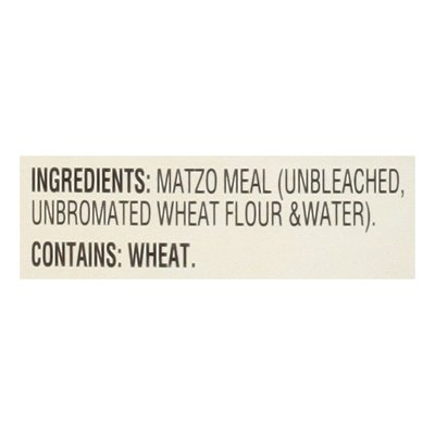 No artificial colors, flavors or preservatives. Sodium free. Non-GMO Project verified. nongmoproject.org. Comfort food for the soul. Estd 1888. No artificial colors or preservatives. Product is sold weight not by volume. Setting may occur. Pas yisroel. Yoshon flour. Challah taken. Manischewitz matzo meal is made with simple, natural ingredients, and has been for 130 years. Use matzo meal to make a classic matzo ball, or blend with spices to create a delicious breading for meat, poultry & fish. manischewitz.com. Facebook. Pinterest. (at)manischewitz. Twitter. Instagram. (at)manischewitzco. Discover more delicious recipes at manischewitz.com. Visit us at: manischewitz.com. Product of USA.