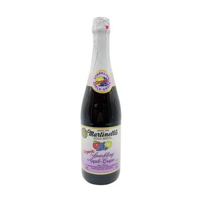 INGREDIENTS: pasteurized 100% pure carbonated apple juice from us grown fresh organic apples, filtered water, pure concentrated organic grape juice