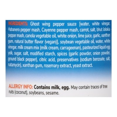 Creamy dipping sauce and spicy dressing. Set Your Mouth on Flavor: You want fire? That's easy. Anyone can strike a match, but few can strike a balance. A balance where heat and flavor find themselves on equal footing. At Melinda's Craft Pepper Sauces and Condiments, we pride ourselves on striking that perfect balance in every sauce we make. Get ready to set your mouth on flavor. Melinda's Ghost Buffalo Ranch: We blended our signature ranch with our best-selling Ghost Pepper Wing Sauce to craft the ultimate Buffalo Ranch for wings, pizzas, fries and sandwiches. It also seconds as a spicy salad dressing. Dip, dunk and dive your tenders and veggies into this masterpiece. melindas.com. Facebook: (at)melindashotsauce. Tiktok, Instagram, Twitter: (at)melindasfoods. 800.886.6354. Product of Colombia.