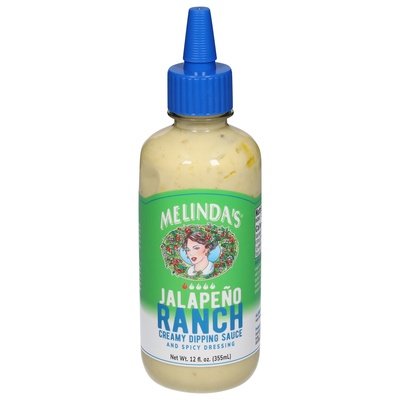 Creamy dipping sauce and spicy dressing. Set Your Mouth on Flavor: You want fire? That's easy. Anyone can strike a match, but few can strike a balance. A balance where heat and flavor find themselves on equal footing. At Melinda's Craft Pepper Sauces and Condiments, we pride ourselves on striking that perfect balance in every sauce we make. Get ready to set your mouth on flavor. Melinda's Jalapeño Ranch: Soon to be a Melinda's classic: we blended creamy ranch with tangy jalapeno peppers to craft a smooth, mild and zesty ranch perfect for wings, pizzas, fries and sandwiches. There is nothing this sauce can't do. Try it as a spicy salad dressing or dip, dunk and dive your tenders and veggies into this creamy sauce every day, everywhere. melindas.com. Facebook: (at)melindashotsauce. Tiktok, Instagram, Twitter: (at)melindasfoods. 800.886.6354. Product of Colombia.