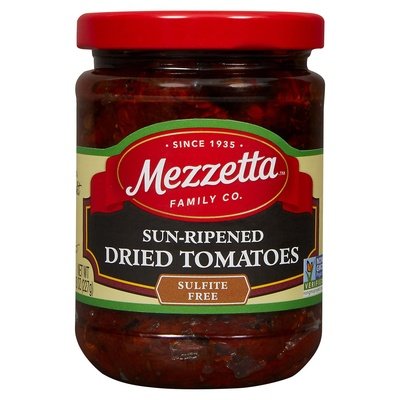 Sulfite free. Certified gluten free. Non-GMO Project verified. nongmoproject.org. Since 1935. Family Co. Being sulfite free, we sacrificed bright color for these dried tomatoes, but made up for it in flavor. Fourth generation family company. - Jeff Mezzetta. Mezzetta.com. Get inspired at Mezzetta.com. 100% Recyclable.