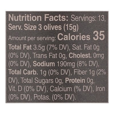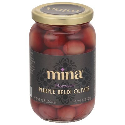 Dr wt 7 oz (200 g). Non-GMO Project verified. nongmoproject.org. Our purple beldi olives are carefully hand picked at peak ripeness and naturally cured in water and sea salt. With red to purple skin and a deliciously tender and juicy texture, they yield a flesh that easily separates from the pit. casablancafoods.com. For recipes and information visit casablancafoods.com. Questions or comments, call us 1-877-818-0777. Product of Morocco.