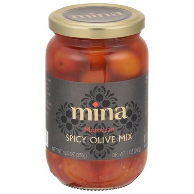 Non-GMO Project verified. nongmoproject.org. Our spicy olive oil mix is comprised of premium Moroccan olive varieties marinated with chili pepper, lemon, and extra virgin olive oil. The combination delivers a delectable savory twist on traditional Moroccan flavors. mina.co. For recipes and information visit mina.co. Product of Morocco.