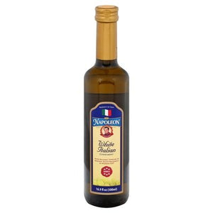 Vegan. Gluten free. No GMO. Since 1903. Classic taste. With balsamic vinegar of modena Aceto Balsamico Di Modena IGP. Barrels. Napoleon White Italian Condiment is produced from selected white wine vinegar and concentrated grape must. A favorite of discerning cooks who want a sweet, aromatic vinegar in their salads and recipes, but want to preserve the natural color of the food. Acidity 5.4%. Family owned in the Northeast since 1903. www.napoleon-co.com. Product of Italy.