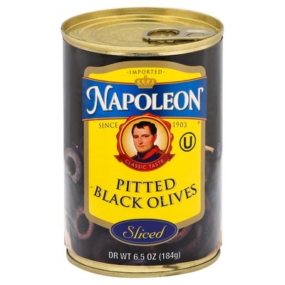 Vegan. Gluten free. Non GMO. Imported. Since 1903. Napoleon sliced black ripe olives are a delicious snack or appetizer, as well as a flavorful addition to quesadillas or salad. ES (This product was grown using environmentally friendly, sustainable agriculture practices). Family owned in the Northwest since 1903. www.napoleon-co.com. BPA free. Product of Spain.