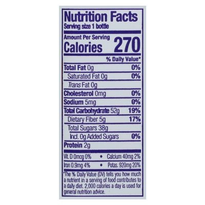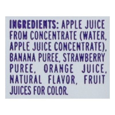 Blend of 6 juices partially from concentrate with other natural flavors. 270 calories per bottle. The Goodness Inside: No preservatives added. No sugar added (Not a low calorie food. See nutrition panel for information on sugar and calorie content). Juices from (per bottle): 3 apples; 1-1/2 bananas; 10-1/4 strawberries & a hint of orange. Also provides (per bottle) 920 mg potassium. Gluten free. Vegan (visit our website for more information on our vegan claim). No sugar added (not a low calorie food. See nutrition panel for information on sugar and calorie content). Non-GMO Project verified. nongmoproject.org. All sugars come from the fruit and/or vegetables. Gently pasteurized. nakedjuice.com. For more information visit nakedjuice.com. Questions or comments call (877) 858-4237. The Goodness Outside: This renewabottle is 100% recycled plastic - continue the cycle and recycle! We think being square is pretty Flippin' cool! Our square bottles allow us to squeeze more into our shipments, making us more fuel efficient and reducing our carbon footprint! 1,824 solar panels at our bottling facility provide the energy equivalent of the yearly usage of 51 US homes. Please recycle.