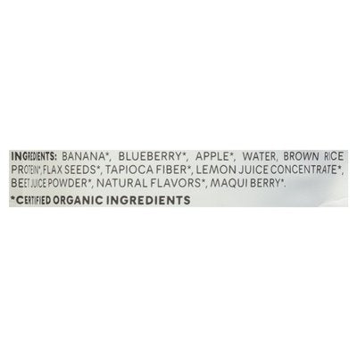 5 grams of protein. 6 g fiber. 600 mg omega-3. USDA Organic. Certified Organic by Utah Dept. of Agriculture and Food. Vegan. Gluten free. No sugar added. Not a low calorie food. Non-GMO Project verified. nongmoproject.org. Prebiotic fiber. Plant protein, flex & maqui. Delicious plant-based smoothies on the go. Support gut health. Organic fruit. BPA free. BPA free. Processed & packaged in USA.