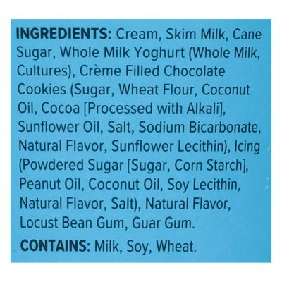 No artificial flavors. Finest desserts. Probiotics. Over-the-Top Decadent. Extra creamy, oh-so-dreamy sweet cream frozen yoghurt gelato packed with creme filled chocolate cookies and swirls of rich icing. 844.800.Gday. Sustainable Forestry Initiative: Certified sourcing. www.sfiprogram.org.