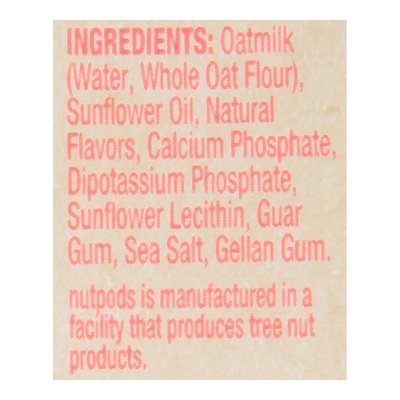Naturally flavored. 0 g sugar per serving. Per 1 tbsp: 10 calories; 0 g sat fat (0% DV); 0 mg sodium (0% DV); 0 g total sugars. Certified Gluten-Free. gfco.org. Vegan. Dairy-free. Nut-free. Soy-free. Carrageenan-free. Non-GMO Project verified. nongmoproject.org. Non-gmo. Really? No nuts? While nutpods is known for almond and coconut creamers, when I tried the creamy goodness of oat I knew an oat creamer would be perfect for nutpods. Rich, frothable and simply delicious, nutpods oat offers the taste and consistency of half and half without the unnecessary additives or added sugars. I hope you love nutpods oat creamer as much as I do. Happy sipping, Madeline, Mom and Founder. Separation is natural. Smooth. Balanced. Delicious. Unsweetened & dairy-free. nutpods.com. gfco.org. nongmoproject.org. Facebook. Instagram. Twitter. (at)nutpods. We would love to hear from you! nutpods.com/hello. Plant Pack (This Plant Pack contains FSC-certified carton board, and plant-based plastics that are certified via a mass balance system. For more info visit: nutpods.com). Plant-Based. FSC: Mix - Board. Please recycle.