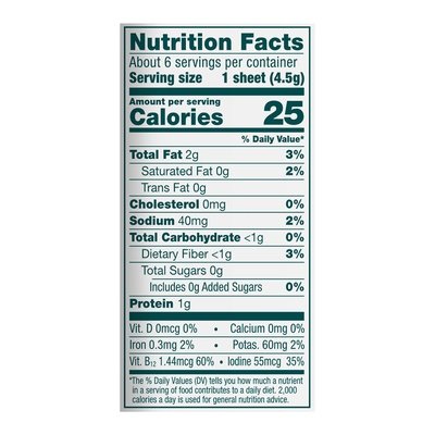 greater than 1 g net carbs. USDA Organic. Certified gluten free. Certified vegan. Vegan.org. Certified Organic: Quality Assurance International (QAI). Non-GMO Project verified. nongmoproject.org. Roasted to light crispy perfection. Delicious, nutritious, snackable fun! Powered by one of the world's most nutrient-dense veggies, our seaweed sheets are craveably crafted to deliver an amazing crispy crunch with a salty umami flavor that will have you saying gimMe more! No 1 organic seaweed. Did you know? Gim means seaweed in Korea. More of a good thing. What if we made our famous roasted seaweed snacks larger? Like, way larger, so you could have more of that crispy crunch and salty umami taste you love. Done! And with less than 1g net carbs, this might just be a delicious + nutritious new way to snack, wrap, crumble, or roll! Snack, sprinkle, or wrap! gimmesnacks.com. Instagram. Facebook (at)gimmegrams. Scan code to discover delicious recipes! Try more of our tasty snacks at gimmesnacks.com. Sea Turtle Conservancy. Product of Korea.