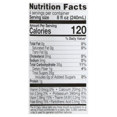 USDA Organic. 100% vegan. Gluten free. Allergen free (per FDA 8 major food allergens). Casein free. Certified Organic by Quality Certification Services (QCS). Non GMO. Nourishing since 1935. Not from concentrated juice. Fresh pressed. Vacuum sealed. No preservatives. Unsweetened: Naturally occurring sugars in fruits/vegetables. What’s in the Bottle: Organic oranges and mangos. Family owned and operated since 1935. Pasteurized juice squeezed from fresh fruit. www.lakewoodorganic.com. Facebook. Instagram. Pinterest. Feel good. Live good. Glass recycles. All glass. BPA/BPS/DEHP free.