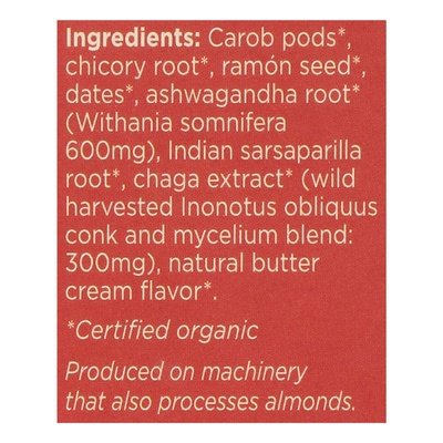 Mushroom adaptogen blend. Gluten free. USDA Organic. Heart-healthy potassium - for optimal performance. Certified gluten free by the Gluten Free certifying organization, www.gfco.org. Vegan. Certified organic by QAI. Certified Gluten free. Gfco.org. Prebiotic. Caffeine free. 100% naturally caffeine free. 3x more herbs. Mushroom herbal tea. Buttercotch cream. Acid free. Adapt. Protect. Revitalize. The rock stars of the plant & mushroom kingdoms are blended together to infuse ultimate health protection into your cup. Here's the skinny: Adaptogens help your body adapt to all kinds of stress while giving a boost to your endurance and immunity. We can all use more of that! Chaga, called The Gift of the Gods by Siberian natives living in the coldest of climates, is paired with Ashwagandha, India's Ayurvedic tonic used for rejuvenation. Blended with prebiotic chicory and deep roasted ramon seeds, experience bold, rich flavor with adaptogens fortifying your defenses! Natural energy boost - from nutrients, not stimulants. Acid free - helps restore alkaline balance. Prebiotic - Inulin, a soluble fiber in chicory roots, supports gut health to improve digestion, elimination and the immune system. More Health Benefits in Every Cup: Chaga, Siberia's heal-all wild mushroom, compliments roasted ramon seeds and chicory softened by creamy butterscotch from India's restorative ashwagandha root. 6g tea bag = 3x more herbs = bold flavor and more health benefits! www.teeccino.com. Product of the USA.