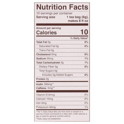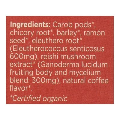 USDA Organic. About Gluten: Independent laboratory tests can not detect gluten in brewed Teeccino when using a paper filter or tea bag. For a list of Teeccino's certified gluten-free herbal teas, please visit teeccino.com/gluten. Vegan. Certified organic by QAI. Prebiotic. Caffeine free. 100% naturally caffeine free. Mushroom adaptogen blend. 3x more herbs. Acid free. Adapt. Protect. Revitalize. The rock stars of the plant & mushroom kingdoms are blended together to infuse ultimate health protection into your cup. Here's the skinny: Adaptogens help your body adapt to all kinds of stress while giving a boost to your endurance and immunity. We can all use more of that! Reishi, revered for 2000 years in Asia as the Mushroom of Longevity, is paired with eleuthero, whose ginseng-like properties inspired Russian scientists to coin the term 'adaptogen'. Blended with prebiotic chicory and deep roasted ramon seeds, experience bold, rich flavor with adaptogens fortifying your defenses! Natural energy boost-from nutrients, not stimulants. Acid free-helps restore alkaline balance. Heart-healthy potassium- for optimal performance. Prebiotic-Inulin, a soluble fiber in chicory root, supports gut health to improve digestion, elimination and the immune system. More Health Benefits in Every Cup: Reishi Asia's famed health-promoting mushroom, enhanced with Siberia's gold-standard adaptogen, eleuthero, plus deep, rich coffee-like flavor from roasted chicory and ramon seeds. 6g tea bag = 3x more herbs = bold flavor and more health benefits! www.teeccino.com. Product of the USA.