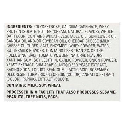 Flavored with other natural flavors. 10 g protein. 5 g net carbs (10 g total carbs - 5 g fiber = 5 g net carbs) per serving. Contains a bioengineered food ingredient. What's your Quest? Ours is to support you with delicious, athlete-worthy nutrition. We use only quality ingredients to give you great-tasting food that isn't packed with sugar and net carbs. So our innovative, protein-forward recipes aren't just for athletes to enjoy - they're for everyone! It's way bigger than a cheese cracker. It's a Quest. questnutrition.com. Follow us (hashtag)onaquest. (at)questnutrition. Instagram. Facebook. Twitter. YouTube. 888-212-0601. Recyclable paperboard packaging. Sustainable Forestry Initiative: Certified sourcing. www.sfiprogram.org. Product of Canada. Packaged in USA/Canada.