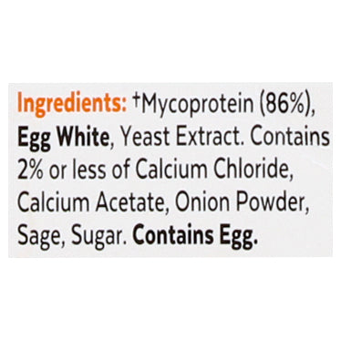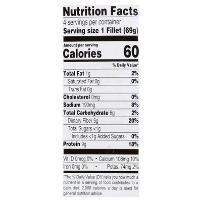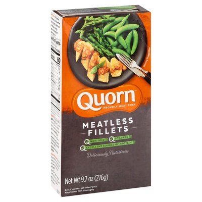 Per 1 Fillet Serving (69 g): 60 calories; 0 g sat fat (0% DV); 190 mg sodium (8% DV); less than 1 g sugars; 5 g fiber (20% DV); 9 g protein (18% DV). Soy-free. Suitable for gluten-free diets. Excellent source of protein. Suitable for vegetarians. Non-GMO. Proudly meat free. Deliciously nutritious. Sustainable Nutrition: At Quorn, we produce our own unique protein, called Mycoprotein (Mycoprotein: Mycoprotein is a mold [member of the fungi family]. There have been rare cases of allergic reactions to products that contain Mycoprotein), which is a unique blend of protein and fiber. Producing Mycoprotein (Mycoprotein: Mycoprotein is a mold [member of the fungi family]. There have been rare cases of allergic reactions to products that contain Mycoprotein) uses less land and water than animal protein production, so it's better for the planet too! We think it is great - But if you're not totally happy. Please return all packaging to Quorn Foods Inc. PO Box 10789, Chicago, IL 60610. www.quorn.us. Facebook. Twitter. Instagram. For delicious recipe inspiration, to discover other Quorn products, and to find out more about our approach to sustainable nutrition, visit www.quorn.us. Recyclable cartonboard. Product of the United Kingdom.