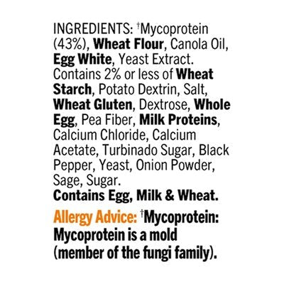 8 g protein per serving. 5 g fiber per serving. Soy-free. Suitable for vegetarian. Sustainable Nutrition: At Quorn, we produce our own unique protein, called mycoprotein, which a unique blend of protein and fiber. Producing mycoprotein uses less land and water then animal protein production, so it's better for the planet too! We think it is great, but if you're not totally happy. Please return all packaging to Quorn Foods, Inc., PO Box 10789, Chicago, IL 60610. Or email us at customer.services(at)quornfoods.com. www.quorn.us, how2recycle.info. Learn more about Quorn. Facebook. Twitter. Instagram. For delicious recipe inspiration, to discover other Quorn products, and to find out more about our approach to sustainable nutrition, visit www.quorn.us. Product of the USA with domestic and internationally sourced ingredients.