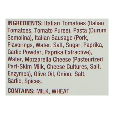 Spicy Italian sausage crumbles over pasta in an arrabbiata sauce topped with mozzarella. No preservatives, no artificial colors or flavors. Since 1896. Made for home. No preservatives. Over 120 years in the making. Bring home the taste of our fiery Penne Arrabbiata with spicy sausage. Spicy Italian sausage crumbles are served on a bed of al dente penne pasta, generously covered in zesty marinara sauce, and topped with mozzarella cheese. It's packed with crushed red pepper flakes, oregano, basil, and black pepper. U.S. inspected and passed by Department of Agriculture. www.raos.com.