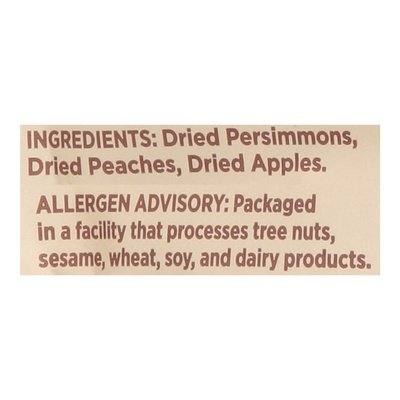 Sweet persimmon. Tangy peach. Red apple 140 calories per serving. 5 g fiber per serving. Gluten free. Vegan. Paleo friendly. No sulfites. Non-GMO Project verified. nongmoproject.org. Nothing added. Keep it real. Eat the peel. Peel Power: Mother nature knows best! That's why she added a peel to fruit-nutritious and delicious-it's the zest part! We keep the skin on our slices of the most delicious, upcycled dried fruit to Maximize taste and Minimize waste. The result is a whole-food superfruit snack that's full of flavor and helps fight food waste! Expand Your Rind: Persimmon is derived from the Latin word meaning fruit of god; one bite and you'll understand why. Keep it real. rindsnacks.com. loveisrind.org. nongmoproject.org Instagram. Facebook. (at)rindsnacks. Scan to learn more. (hashtag)EatThePeel. Peel back more: rindsnacks.com. Love is Rind: Through our Love is Rind campaign, we donate nutritious snacks to school children in need and teach them the importance of healthy snack habits early - helping to nourish both body and mind through Rind! To learn more, please visit: loveisrind.org. Persimmons, peaches & apples product of USA.