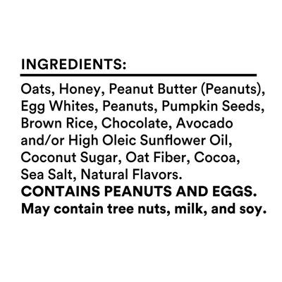 3 tbsp oats; 14 peanuts; 2 egg whites; 2 tsp honey; no B.S. 10 g protein. Gluten free. A.M. Quantities of ingredients listed on front determined by net weight. www.rxbar.com.