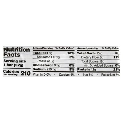 12 g protein bar. Gluten free. 3 egg whites. 6 almonds. 4 cashews. 2 dates. No BS. Quantities of ingredients listed on front determined by net weight. www.rxbar.com.