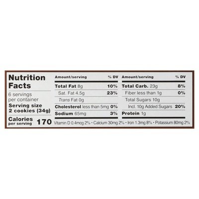 Cookie drenched in decadent milk chocolate. Certified gluten-free. Wheat free. Non GMO. Preservative free. Get in touch with us! go.schar.com/get-in-touch. Scan. Rainforest Alliance People & Nature. FSC. Supporting responsible forestry. A little piece of a better world. Separate your waste according to your local guidelines. Please recycle this box. Product of France.