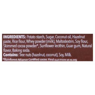Crispy water with nutty hazelnut filling. Certified gluten-free. Wheat free. Non GMO. Preservative free. go.schar.com/get-in-touch. Ra.org. Get in touch with us! go.schar.com/get-in-touch. Scan me. Rainforest Alliance: People & nature. Cocoa. Product of Italy.
