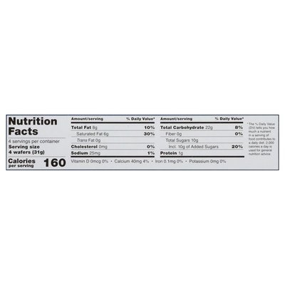 Naturally flavored Crispy wafer with creamy vanilla filling. Certified gluten-free. Wheat free. Non GMO. Preservative free. go.schar.com/get-in-touch. www.fsc.org. Get in touch with us! go.schar.com/get-in-touch. Scan. Every day is Earth Day. Separate your waste according to your local guidelines. Please recycle this box. FSC: Packaging from responsible resources. Recycled. www.fsc.org. Product of Italy.
