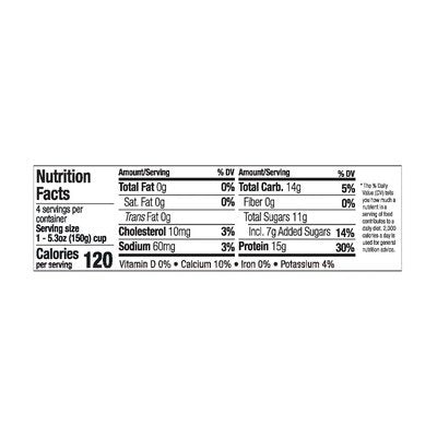 All natural icelandic yogurt. No added artificial or natural flavors. 15 g protein. 11 g sugar. Lowfat. Certified gluten-free. gfco.org. 0% milkfat. Non GMO. New larger size. 3.6 oz more than Siggi's lowfat yogurt 4.4 oz 4-packs. Simple ingredient skyr. All natural. No added colors. No preservatives. No rBST (No significant difference has been shown between milk derived from rBST treated and non-rBST treated cows). Grade A.