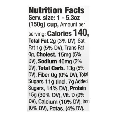15 g protein. Lowfat. Certified gluten-free. gfco.org. Simple ingredient skyr. Remove label to: Ready our story. Please discard responsibly. Crafted with Less: No added artificial or natural flavorings. No added colors. No artificial sweeteners. No gums. No preservatives. No stevia. Grade A.