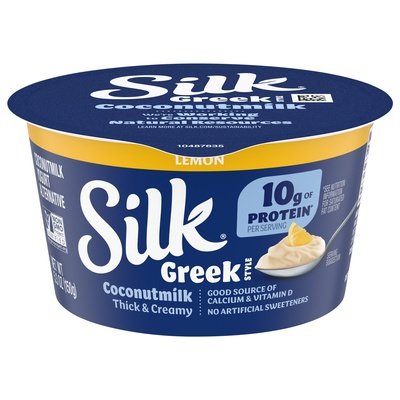 10 g of protein (See nutrition information for saturated fat content) per serving. Certified vegan. Vegan.org. Gluten-free. Good source of calcium & vitamin D. Non-GMO Project verified. nongmoproject.org. Thick & creamy. No artificial sweeteners. Part of the Danone Family. silk.com. how2recycle.info. Visit silk.com or call 888-820-9283. Certified B Corporation. We're working to conserve natural resources. Learn more at silk.com/sustainability.
