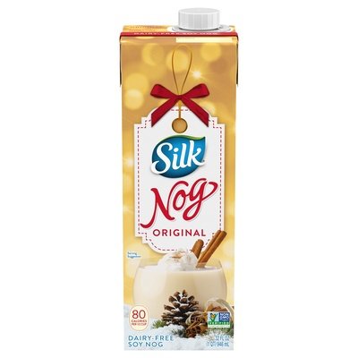 No artificial flavors. 80 calories per 1/2 cup. 0 g saturated fat per serving. Dairy-free. Gluten-free. Dairy & lactose-free. Cholesterol-free. Non-GMO Project verified. nongmoproject.org. A holiday classic. Ring in the season with notes of nutmeg and cinnamon and the smooth, velvety flavor of Silk Soy Nog. Raise a festive glass or two - our nog is made without eggs, dairy or saturated fat. As always, Silk Soy Nog tastes best with family and friends. Nog Creme Brulee. This dessert not only looks beautiful, it tastes amazing. And this holiday show-stopper takes only half an hour to make. With love from Silk. Danone. Proud Member of the Danone Family. Non-Alcoholic. Here just for the holidays, Silk Soy Nog is worth the wait. If you don't love it, we'll give you your money back. Promise. Visit Silk.com/Lovelt or call 888-820-9283 for a full refund. Limit two refunds per household per year. Proof of purchase may be required. silk.com. how2recycle.info. Recipe at Silk.com. To learn more, visit us t Silk.com/allergens. Certified B Corporation. Packaging by Sig.