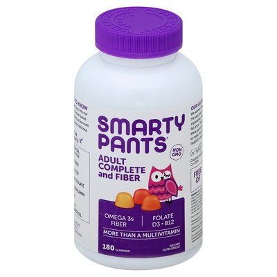Dietary Supplement. Non GMO. Omega 3s. Fiber. Folate. D3. B12. More than a multivitamin. Essential omega 3 oils from sustainable fisheries. We Want You to Know: That every nutrient that goes into our gummies is carefully chosen based on extensive research. And just as much care goes into making them delicious. Superstar Ingredients: omega 3 fish oil from small fish; prebiotic fiber; vitamin D as D3; folate as methylfolate; B12 as Methylcobalamin; iodine; vitamin E from sunflower oil. 3 Delicious Flavors: lemon, orange, and strawberry banana. Our Gummy Obsession: We started SmartyPants because we believe the very best vitamins are all in one: premium ingredients delivered in a delicious package at a fair price. The people we care most about take these gummies, so we wake up every day trying to make them better and better. Our goal, good health for the real world. All of it - Courtney & Gordon Co-CEOs. Vitamin angels proud supporter. 1 for 1 matching partner. Free of GMO's, synthetic colors, artificial flavors and preservatives, yeast, wheat, milk, eggs, soy, gluten, peanuts, tree nut allergens, fish allergens, shellfish, and salicylates. Yay! Every batch 3rd party lab tested. For Customer Support: 1-888-751-2291. www.SmartyPantsVitamins.com. Manufactured in California from domestic and imported ingredients.