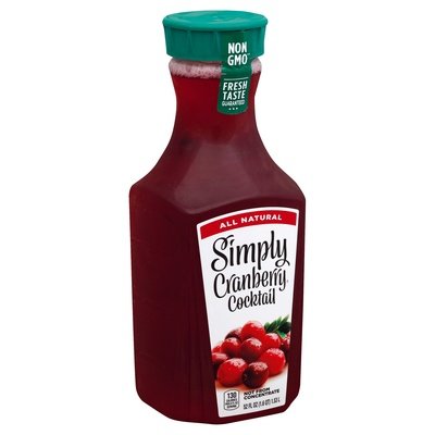 All natural. Not from concentrate. 130 calories per 8 fl oz serving. Non GMO (Non GMO Project verified. nongmoproject.org). Fresh taste guaranteed. 27% cranberry juice. Pasteurized. Very low sodium. Product questions & fresh taste guaranteed info call 1-800-871-2653. www.simplyorangejuice.com. Please recycle. Plantbottle: up to 30% made from plants. 100% recyclable plastic bottle.