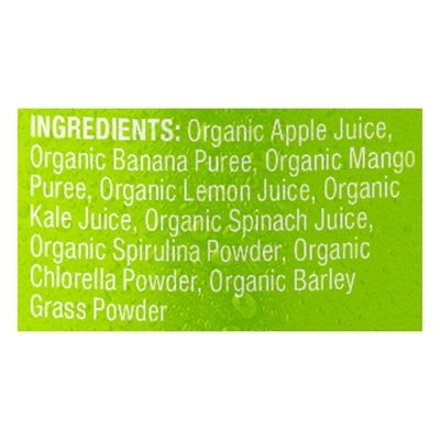 Apple, banana, mango lemon, kale paired with spinach, spirulina, chlorella, barley grass. USDA Organic. Certified Organic by CCOF. Vegan. Gluten free. Non GMO Project verified. nongmorproject.org. Cold-pressed. High-pressure certified. Why wait for afternoon? Suja is made sunny in San Diego, where we pick our favorite local fruits and veggies and then chill them out with cold pressure to keep them feeling fresh and tasting delicious. We bottle up the power of plants so you can make nutrition your bliss! No added preservatives. No added flavors. Separation is natural. So shake things up! sujachoice.com/hpp. Follow (at)lovesuja. Please recycle.