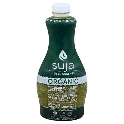 Cucumber. Celery. Grapefruit. Chardcore. It's like a farmer's market in a bottle! Green chard. Green leaf lettuce. Yum yum. Lemon. Kale. Once upon a time all food was organic. Spinach. Parsley. Mint tea. Get your green on. USDA organic. Non GMO Project verified. nongmoproject.org. Cold pressured protected. Non-GMO. Cold-pressured. All of our products are certified organic, non-GMO & cold-pressured, made sunny in San Diego. Suja uses locally sourced ingredients, whenever possible. At Suja, we use cold pressure, also known as high pressure processing (HPP), instead of high heat, to extend shelf life & to help maintain essential vitamins, minerals & enzymes. Visit ColdPressured.org to learn more. Certified gluten-free. 99% juice. Gluten free. BPA free. Dairy free. Soy free. No added sweeteners. Vegan. Hashtag ItsTheJuice. Certified organic by CCOF. SujaJuice.com.