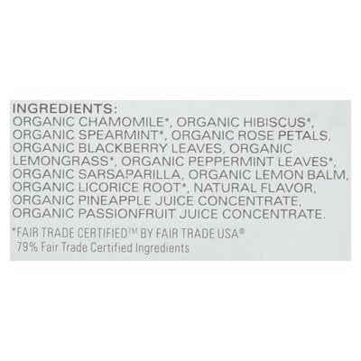 Based on herbal tea brewed with freshly boiled water for 5 minutes (no milk, no sugar), an 8 fl oz cup typically contains insignificant amounts of calories, fats, carbohydrates, sugars, protein and sodium. Caffeine Free. USDA Organic. Certified organic by Pennsylvania certified organic. Non-GMO Project verified. nongmoproject.org. Regenerative. Unwind with a relaxing blend of chamomile, rose petals & soothing herbs. This is more than a box of tea. It's a peek into a brighter future- where people and planet can thrive. For starters, we expertly blend ingredients grown with regenerative practices to help conserve nature, encourage biodiversity and improve soil health. It also means treating people with the respect and pay they deserve. The result: delicious. USDA-certified organic, fair trade certified m blends that brew a better future. Tm so by choosing this box of tea, you're not just brewing a tasty blend. You're helping create a better world. And that's definitely worth sipping to. Learn more at tazo.com. This herbal tea has all the chill. Infused with mellow chamomile, sweet rose petals, and soothing herbs, calm chamomile is the oh-so-soothing tea you'll want to keep within arm's reach at all times. And since it's made from Fair Trade Certified M ingredients grown with regenerative. Agriculture practices, it's better for the people who produce the tea, and the land where it's grown. See? So chill. Regenerative tea growing principles: Organic. Conservation. Fair Trade. tazo.com. how2recycle.info. For more information, please call 855-TAZO-TEA or visit tazo.com. This carton is made from 100% recycled content with at least 35% post-consumer content. Fair Trade certified.