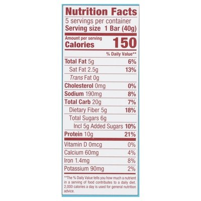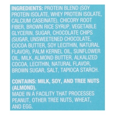 Chocolate chip with other natural flavors. 10 g protein. 5 g fiber. 5 g of fat per bar. 6 g sugar per bar. Gluten free. Certified gluten free. gfco.org. Low GI. No artificial sweeteners (Does not contain sucralose, saccharin, aspartame, acesulfame potassium, neotame, or advantame). thinkPromise (thinkPromise Please visit thinkproducts.com to learn more about our commitment to quality ingredients). So we were thinking, why shouldn't you be able to get a nutritious and delicious snack to help keep you full and satisfied? That's why every think! Protein+ 150 Calorie Bar has the perfect balance of protein and fiber with no more than 6 g of sugar in decadent flavors like Chocolate Chip. Filled with chocolate chips and just the right mix of chewy and crisp in every bite, this bar is a delicious way to keep you going through your day. GI Labs tested. www.thinkproducts.com. Please recycle. Product of Canada.