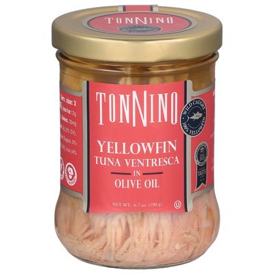Gluten free. Low mercury less than 0.5 ppm. Non GMO Project verified. nongmoproject.org. 100% Yellowfin. Dolphin safe. Chef inspired. www.tonnino.com/trace. For customer service please contact: 1-833-866-6466. Trace this tuna: www.tonnino.com/trace. 2020 International Taste & Quality Institute Brussels: Superior Taste Award. Wild caught hand packed. Dolphin safe. Product of Costa Rica.