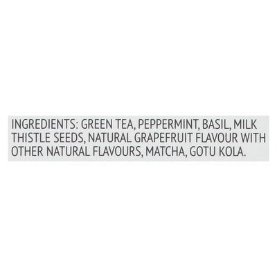 Grapefruit & basil flavoured green tea. New look! London.+ Gotu Kola. At Twinings, We Believe in Living Well and Enjoying Life. Since our humble beginnings in 1706, our drinks have delighted consumers for generations. Today, our Master Blenders seek out the finest teas, herbs, and botanicals from around the world to brilliantly blend delicious wellbeing drinks that taste great and do you good. Our Superblends range of teas are carefully crafted for your enjoyment as you take positive steps towards living well, feeling good, and enjoying life. Drink in life. Over 300 years of experience est. 1706. Gotu Kola: A well-known adaptogen with a long history of use in Ayurvedic traditional herbal medicine and believed help bring your body back into balance. Milk Thistle: A plant with prickly purple flowers, which has been traditionally used to support liver function and aid your body's natural elimination of toxins. Green Tea: Our green teas are gently pan fired and rolled from the gardens of China to your cup! Brilliantly blended by our Master Blenders to maximize benefits and flavour. Want to bring your body back into balance? This easy-to-drink wellness tea works in harmony with your body's natural detoxification process to address toxins that normally accumulate. An enjoyable drink for your mind, body, and soul. Are you ready to feel great? Enjoy two cups of this tea a day for optimum detoxifying benefits as part of a varied and balanced diet and a healthy lifestyle. What does it taste like? A delicious green tea with an exhilarating blend of savoury basil, cool peppermint, and the refreshing flavour of grapefruit. www.twiningsusa.com. sourcedwithcare.com. Want to talk tea? Call us at: 1-800-803-6695, www.twiningsusa.com. We are a member of Ethical Tea Partnership. Sourced with Care Twinings of London. We source with care. Learn more at: sourcedwithcare.com. Recyclable carton.