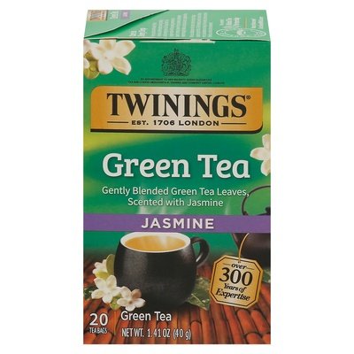 Gently blended green tea leaves, scented with jasmine. By appointment to her majesty Queen Elizabeth II. Tea and coffee merchants R. Twinning and Company Limited, London. Est. 1706 London. Over 300 years of expertise. Experience an energizing moment as you breathe in the blossoming aroma and sip this delicate green tea. Jasmine blossoms are picked early in the morning, kept cool during the day, then mixed with green tea towards the evening so as they bloom, the scent can infuse the tea with their uniquely floral aroma. - Stephen Twining, Master Blender & 10th Generation, Twining Family. What does it taste like? The light & delicate flavour dances on the tongue and delivers a heady jasmine floral aroma. A golden, honey-orange coloured tea. At Twinings, We Believe in Living Well and Enjoying Life. Since our humble beginnings in 1706, our drinks have delighted consumers for generations. Today, our Master Blenders and Herbalists seek out the finest teas, herbs, and botanicals from around the world to brilliantly blend delicious wellbeing drinks that taste great and do you good. One sip at a time, we celebrate the small steps we can all take to feel even more optimistic about a life well-lived. Drink in life. TwiningsUSA.com. Want to talk tea? Call us at 1-800-803-6695, go to TwiningsUSA.com, or visit our original English storefront in The Strand, London. Care in Every Drop: Every cup starts with nature's finest tea leaves and the people growing, tending, and harvesting them. Our Sourced with Care program works with tea-growing communities to support incomes, improve living standards, and empower women through healthcare and equal access to opportunities. We also collaborate with others in the tea sector, through supporting the Ethical Tea Partnership's work to create a fairer, more sustainable tea industry for tea workers, farmers and their families, as well as the environment. Sourced with care. We are a member of Ethical Tea Partnership. Want to find out more? Go to SourcedWithCare.com. Discover other varieties you may enjoy! Pure Green Tea Smooth & Refreshing. Lemon & Ginger Herbal Tea Soothing & Invigorating. To explore all 50+ varieties, go to TwiningsUSA.com. Recyclable carton. Compostable tea bags.