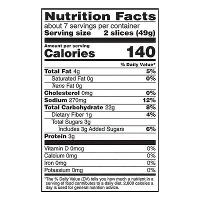 No artificial dyes or flavors. Per 2 Slices: 140 calories; 0 g sat fat (0% DV); 270 mg sodium (12% DV); 3 g total sugars. Certified gluten-free. No dairy, soy, tree nut, or peanut ingredients. Whole Grain: 9 g or more per serving. Eat 48 g or more of whole grains daily. WholeGrainsCouncil.org. New flavor. Delicious. Whole lotta goodness! Don't you just love a whole grain bread that's soft & perfect with all that hearty grain flavor? (we do too) that's why we baked up a delicious whole grain bread that's everything you love and gluten free too. www.udisglutenfree.com. how2recycle.info. SmartLabel: Scan or call 1-800-254-3768 for more food information. For more information on Udi's gluten free visit us at udisglutenfree.com. Questions or comments? visit us at www.udisglutenfree.com or call 1-800-254-3768.