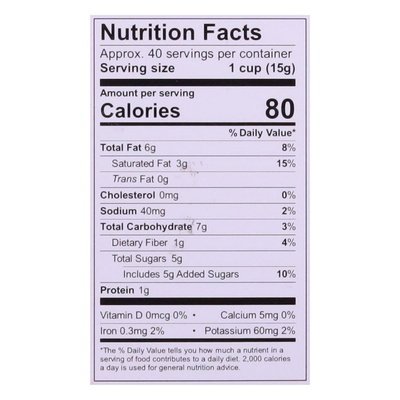 5 g sugar. Certified gluten free. gfco.org. Certified vegan. Vegan.org. Non-GMO Project verified. nongmoproject.org. Simple ingredients. unrealsnacks.com. Please visit our website for further allergen, nutrition and ingredient info. 75% Fair Trade Certified Ingredients. Made in the USA.