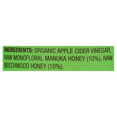 Apple cider vinegar with monofloral manuka honey and the mother. Raw. Unfiltered. Unpasteurized, unfiltered. Made with New Zealand apples contains the mother. Wedderspoon Apple Cider Vinegar with monofloral Manuka Honey is crafted in New Zealand from organic cold-pressed apples, and naturally fermented to preserve the mother of Vinegar. The mother is beneficial bacteria that naturally converts apple cider into vinegar. We add raw Manuka and beechwood honeys for a slightly sweet, Slightly tart taste. It’s the perfect addition to refreshments, salad dressings, or to add a zesty kick of flavor to any dish. Will contain sediment, shake it up, the good stuff is on the bottom! newzealand.com. BPA free packaging. Product of New Zealand. Made in New Zealand.