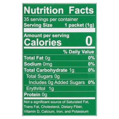 Individual packets. Zero calorie sweetener blend packets. 0 g net carbs (For more information on our net carbs standard, visit WholesomeSweet.com). USDA Organic. Keto Certified. ketostandard.com. Certified Organic by: Quality Assurance International US-ORG-050. Non GMO Project verified. nongmoproject.org. Sweeter than sugar. Equals 70 teaspoons of sugar. Delicious in coffee, tea, smoothies and cereal. No glycemic impact, keto certified, 0 g net carbs. USDA organic, non-GMO Project verified. Each packet = sweetness of 2 teaspoons of sugar. At wholesome we are committed to building stronger, caring communities and that means putting extra care into everything we do. When you want or need to reduce sugar, Wholesome organic stevia is a choice you can feel good about. We blend our organic stevia with organic erythritol for a smooth, versatile sweetness. Proudly part of Whole Earth brands. WholesomeSweet.com. For more of our story and delicious recipes, visit: wholesomesweet.com. Telephone (800) 680-1896. Please recycle.