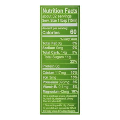 USDA Organic. Certified Organic by: Quality Assurance International. Gluten free. Vegan. Good source of iron & magnesium. Non-GMO Project verified. nongmoproject.org. Fair Food Creates Stronger Communities: Our Organic Molasses is made from pure organic sugar cane harvested using natural, sustainable farming practices handed down from one generation to the next. It's a rich, full-bodied blackstrap molasses with naturally occurring vitamin B6, potassium, calcium, magnesium, and iron. The bold flavor is delicious in cookies, gingerbread, baked beans, BBQ sauces, marinades and more. wholesomesweet.com. For more of our story and delicious recipes, visit: wholesomesweet.com. Proudly part of Whole Earth Brands. Fair Trade Certified. Please recycle.